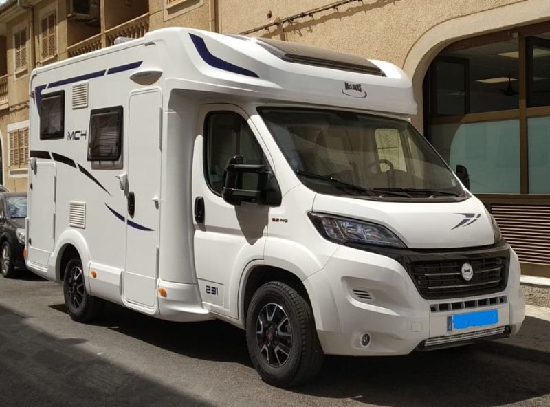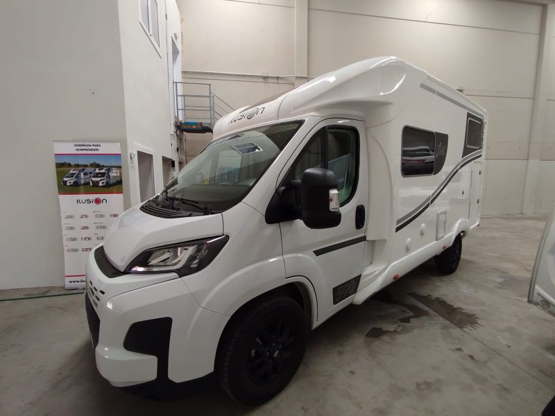 Vehículo compacto practico y funcional con un salón voluminoso, con salon y cocina muy amplios y nevera grande, y ducha separada. Todo en tan solo 599 cm.