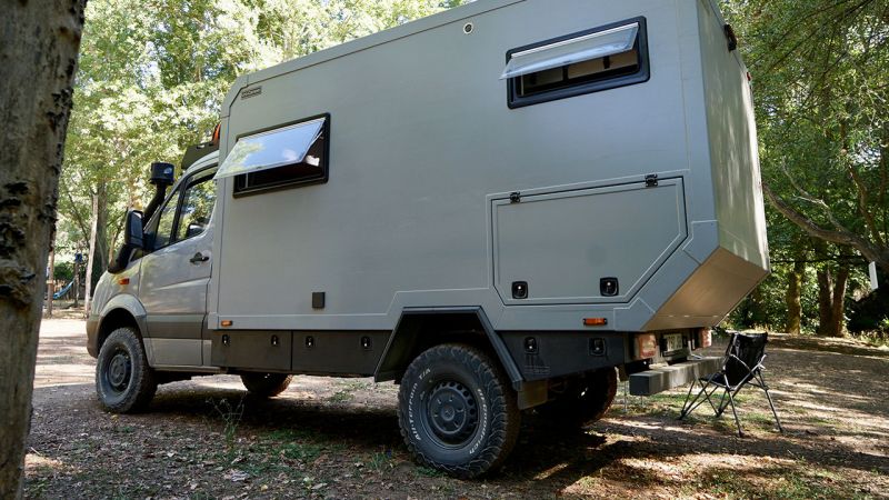 El vehículo elegido como base ha sido la Mercedes Sprinter 4×4 en su versión chasis-cabina el cual goza de gran prestigio entre viajeros overlanders por su gran fiabilidad, robustez y disponibilidad de repuestos y talleres con experiencia en gran parte del mundo. Disponible en 3,5, 4,1 y 5 tm de MMA.