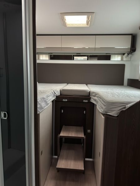 Interior: Camas gemelas convertible en matrimonio 2,10 King Size, cama matrimonio en Capuchina, Calefacción, Lavabo y ducha separados, Gran salón convertible en cama, nevera grande 150l trivalente, Televisión, mosquiteras y oscurecedores en todo el habitaculo.