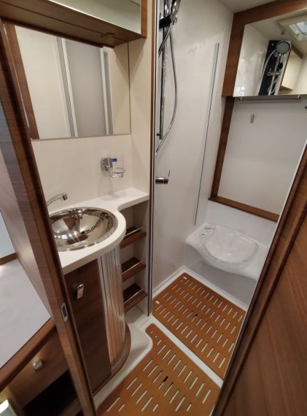 Esta autocaravana viene con el nuevo mobiliario Nacarat y con iluminación de ambiente 100% LED en el salón, la cocina y el dormitorio.
