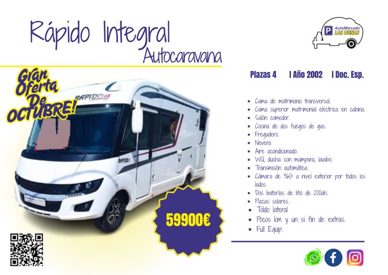 Autocaravana integral de dimensiones compactas con los siguientes puntos a destacar: