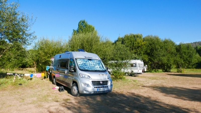 Furgoneta camper con cama transversal para dormir 2 personas y viajar 4 en 5,40m con el siguiente equipamiento adicional: