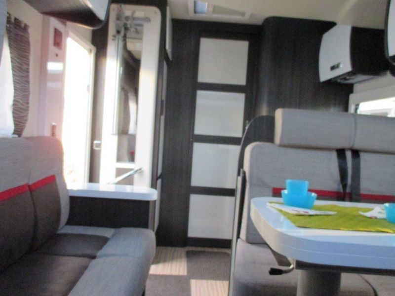 Nuevo Mileo 263 con garaje tiene una habitación independiente con 2 camas individuales convertible en cama doble, dormitorio y baño independientes. También de serie cama doble basculante de techo eléctrica y un gran salón.